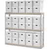 RECORD STORAGE OPEN WITH BOXES 72"W X 15"D X 84"H – 130102 RECORD STORAGE CENTER RUGGED, ROOMY 200 TEST CORRUGATED TRANSFER FILE WITH DOUBLE-THICK FRONT/BACK WALLS HELP KEEP RECORDS PROTECTED AND NEATLY ORGANIZED…KEEPS OUT DUST AND DIRT. LARGE PRINTED LABEL AREA FOR QUICK IDENTIFICATION OF CONTENTS AND HAND HOLES FOR EASY HANDLING. BOXES STORE SECURELY ON RUGGED 5/8" THICK PARTICLEBOARD DECKS. HEAVY-GAUGE STEEL RACK ASSEMBLES WITHOUT TOOLS.