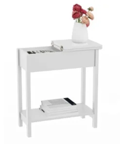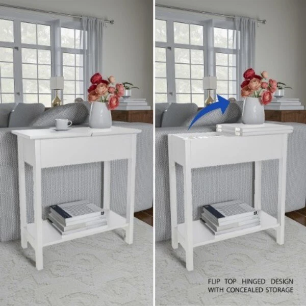 This modern End Table by Hastings Home is perfect for your living room, bedroom, office, or entryway! The neutral white color is sure to beautifully complement any interior design style, while the inside compartment and lower shelf provide valuable storage space. With sturdy MDF construction and easy assembly, this slim side table is an excellent accent piece for any home.