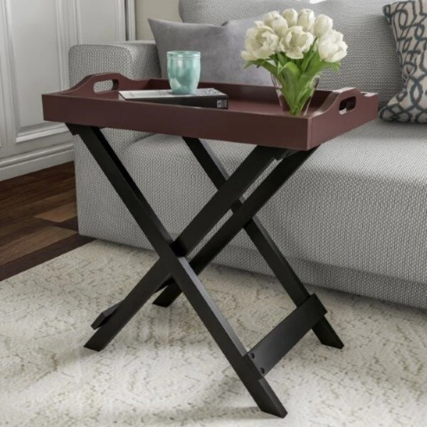 Bring the best of style and function to your home with the Folding Tray Table by Hastings Home. The modern, clean lines and chic style bring casual elegance to your home. The table is constructed from sturdy manufactured wood with a 22-pound weight capacity, and the raised lip of the removable tray top helps keep items in place. The tray locks in place on top of the table legs without the need for tools, and we've taken customer feedback to make the X-shaped support legs stronger by joining them with a screw instead of a dowel. The tray table can conveniently be folded down when it's not in use for easy storage, making it ideal for dorms, small apartments and corner spaces. The versatile end table is ideal for displaying potted plants, art, or decor pieces; It can also serve as a stylish and portable serving, butler, or snack tray table!