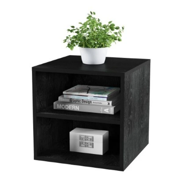 Bring the best of style and function to your home with the Modular Cube Side Table with Double Shelves by Hastings Home. The modern, clean lines and chic, updated style bring casual elegance to your home. The table is constructed from sturdy manufactured wood that supports a 22-pound weight capacity on each shelf as well as the table top. It can be used freestanding on its own, side by side with another to create a coffee table or with bracing kits to stack for vertical shelving. The end table can be assembled easily with the included hardware and convenient, pre-drilled holes on each piece of the unit. The open front and two fixed 7-inch high shelves are great for displaying and organizing a variety of items like books, magazines, collectibles and even vinyl records! The stylish, wood grain look of this side table is sure to enhance your living space decor.