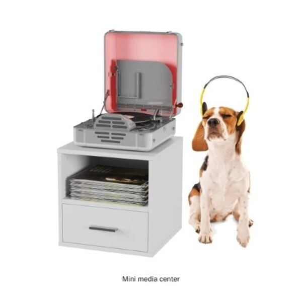 The Cube End Table with Drawer from Hastings Home holds up to 22-pounds on each shelf and drawer while the open design offers storage space for books, collectibles, photo frames and accent pieces. This versatile contemporary looking modular cube can be used as an end table, alongside a second unit to create a coffee table, or stacked to create a shelf using braces (not included). Constructed of durable MDF wood with a chic white veneer, this durable side table assembles in minutes with the provided hardware and will be ready to enhance your living room, office, bathroom, bedroom and more – the possibilities are endless!