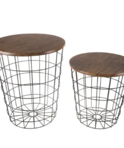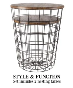 The Wire and Wood Nesting End Table Set from Hastings Home includes two wire basket style bases that can be used as a minimalist display or convenient storage and are topped with wooden lids to create a functional tabletop. The black metal bases can be filled with decorative accents, used to store throw pillows or blankets, and can also be packed with large toys in a kid's room to keep it tidy. The set of nesting tables come in two different sizes and have durable MDF wood tabletops with a woodgrain veneer that will complement rustic industrial or modern farmhouse decor in your living room, office, bathroom, bedroom and more – the possibilities are endless!