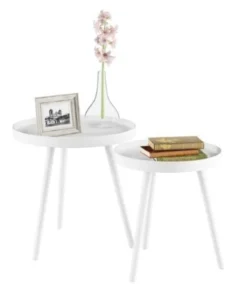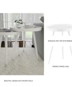Bring the best of style and function to your home with the Nesting Tray Top Side Tables by Hastings Home. The modern, clean lines of this pair of accent tables bring a chic, updated mid-century modern style to your home. The tables are constructed from sturdy manufactured wood that each support a 22-pound weight capacity, and the raised lip of the tray tops helps keep lamps, potted plants and more safely in place. Each tapered spindle leg features a soft foot pad to protect your floors from damage. The end tables assemble in minutes without the need for tools! They can be taken apart when not in use for convenient storage, making them ideal for dorms and small apartments. These accent tables come in a set of two, so you can use them as furniture, snack trays, plant stands or as a statement piece.