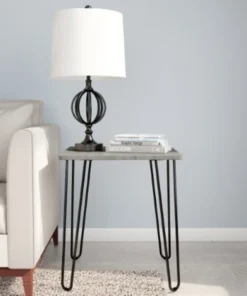 Bring contemporary charm to your home with the Hairpin Leg End Table by Hastings Home. The clean lines of this of accent table bring a chic, updated mid-century modern style to your home. The side table is constructed from sturdy manufactured wood material and powder coated steel, with tapered hairpin style legs that have rubber foot pads to protect your floors from damage. This easy to assemble table takes up a minimal footprint so It's ideal for small homes, apartments or dorms; It's the perfect addition to any room!