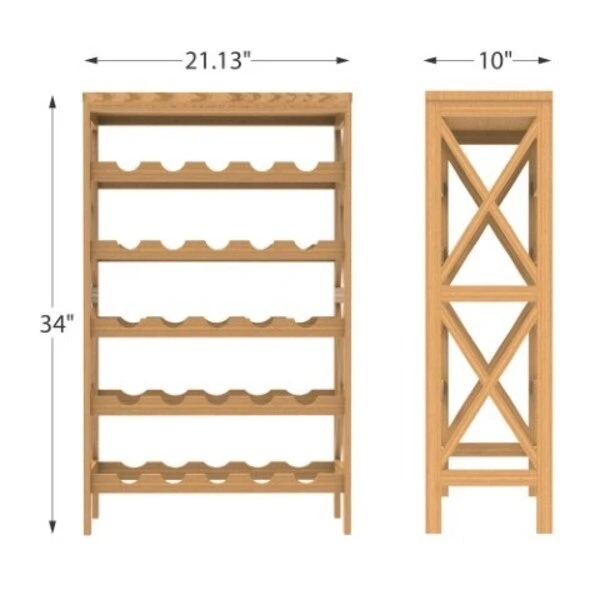 The Rustic Wine Rack by Hastings Home is a beautiful way to display your wine collection. This free-standing wine bottle holder will be a stylish way to store your favorite beverage. Holding up to 25 wine bottles, this classic piece even has a convenient top shelf that's perfect for holding glasses or serving drinks. It's the perfect space saving solution for your kitchen, bar, or dining room.