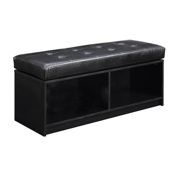 The Broadmoor Storage Ottoman is the perfect complement to almost any room. Featuring two large storage compartments and a faux leather cushion top. Whether you use it in the entryway to welcome guests. or want to sit down and enjoy a book. the Broadmoor will be sure to provide years of enjoyment FeaturesEasy AssemblyTwo Separate Storage CompartmentsFaux Leather Bench Top CushionCoordinates with any décor.Will Provide Years of enjoymentFinish – BlackMaterial – Solid Wood. Flame Retardent Foam and FauxStyle – Transitional