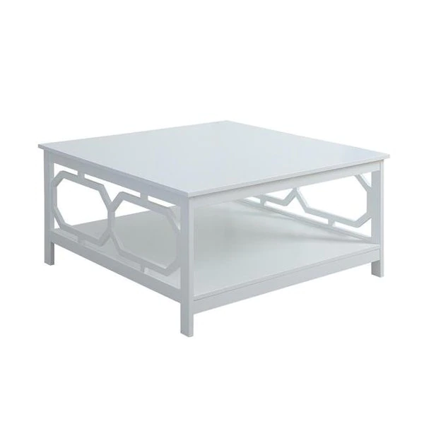 Reinvent your living room with the Omega Square 36" Coffee Table. The simple yet eye-catching design showcases clean lines and beautiful octagon cut outs on the sides. Featuring a large table top surface and a lower shelf that provides usable display space. Engineered for durability this piece will become a staple in your home.FeaturesLarge Surface and Bottom Shelf for Additional DisplayQuick and Easy Set UpComplements any DecorDimension – 35.5 x 35.5 x 17.75 in.Color – White