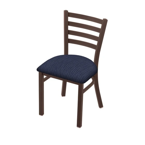 Customize your very own chair with the help of Holland Bar Stool Co. This Black Wrinkle Jackie chair has a contemporary design and provides superb back support for exceptional comfort. The frame is made from commercial quality 16 gauge, 1 1/4 inch tube steel with solid mig welded joints to guarantee strength and durability. The powder coated finish resists chips and scratches and ensures a long-lasting, rich appearance. The wood seats are 1 1/4 inch solid hardwood (oak or maple) and are dished for amazing posterior comfort, making sitting for minutes or hours a pleasure. The cushion seats are of the highest quality as well, utilizing a breathable, commercial grade vinyl or fabric. At the heart of the cushion is 2 1/2 inches of highly-dense, US made foam that provides maximum support and will not breakdown in a couple years. You won't find a higher quality chair on the market. If you are going to finish your dining area or just need a side chair – do it right, with a chair from the Holland Bar Stool Co.