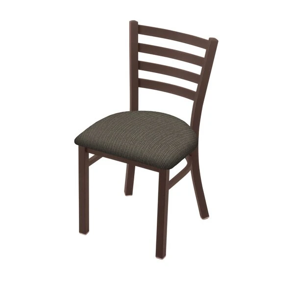 Customize your very own chair with the help of Holland Bar Stool Co. This Black Wrinkle Jackie chair has a contemporary design and provides superb back support for exceptional comfort. The frame is made from commercial quality 16 gauge, 1 1/4 inch tube steel with solid mig welded joints to guarantee strength and durability. The powder coated finish resists chips and scratches and ensures a long-lasting, rich appearance. The wood seats are 1 1/4 inch solid hardwood (oak or maple) and are dished for amazing posterior comfort, making sitting for minutes or hours a pleasure. The cushion seats are of the highest quality as well, utilizing a breathable, commercial grade vinyl or fabric. At the heart of the cushion is 2 1/2 inches of highly-dense, US made foam that provides maximum support and will not breakdown in a couple years. You won't find a higher quality chair on the market. If you are going to finish your dining area or just need a side chair – do it right, with a chair from the Holland Bar Stool Co.