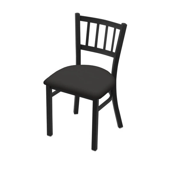 Customize your very own chair with the help of Holland Bar Stool Co. This Black Wrinkle Jackie chair has a contemporary design and provides superb back support for exceptional comfort. The frame is made from commercial quality 16 gauge, 1 1/4 inch tube steel with solid mig welded joints to guarantee strength and durability. The powder coated finish resists chips and scratches and ensures a long-lasting, rich appearance. The wood seats are 1 1/4 inch solid hardwood (oak or maple) and are dished for amazing posterior comfort, making sitting for minutes or hours a pleasure. The cushion seats are of the highest quality as well, utilizing a breathable, commercial grade vinyl or fabric. At the heart of the cushion is 2 1/2 inches of highly-dense, US made foam that provides maximum support and will not breakdown in a couple years. You won't find a higher quality chair on the market. If you are going to finish your dining area or just need a side chair – do it right, with a chair from the Holland Bar Stool Co.