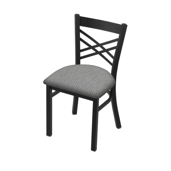 Customize your very own chair with the help of Holland Bar Stool Co. This Black Wrinkle Catalina chair has a contemporary design and provides superb back support for exceptional comfort. The frame is made from commercial quality 16 gauge, 1 1/4 inch tube steel with solid mig welded joints to guarantee strength and durability. The powder coated finish resists chips and scratches and ensures a long-lasting, rich appearance. The wood seats are 1 1/4 inch solid hardwood (oak or maple) and are dished for amazing posterior comfort, making sitting for minutes or hours a pleasure. The cushion seats are of the highest quality as well, utilizing a breathable, commercial grade vinyl or fabric. At the heart of the cushion is 2 1/2 inches of highly-dense, US made foam that provides maximum support and will not breakdown in a couple years. You won't find a higher quality chair on the market. If you are going to finish your dining area or just need a side chair – do it right, with a chair from the Holland Bar Stool Co.