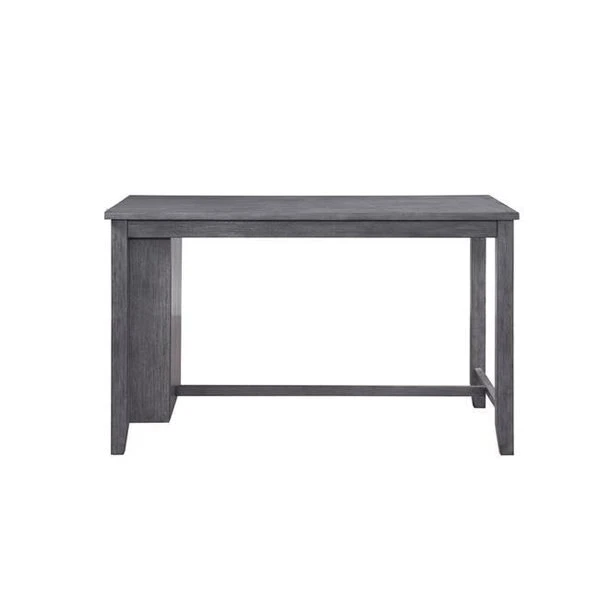 The multifunctional design of the Timbre Collection will be the perfect addition to your dining nook. A built-in bookcase provides open display space to this counter height offering. Wire brushed acacia Veneer is highlighted by a gray finish. Textured vinyl seats top the accompanying stools and features nailhead accent for added decorative flair. SpecificationsCollection: TimbreColor: GrayVolume: 12.43 cu ft.Dimension: 36" H x 60" W x 30" L