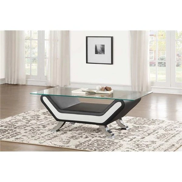 Bringing to mind the sleek styling of an Italian race car. bold contemporary styling creates eyecatching drama for your living room with the Veloce Collection. Color blocked black and ivory bi-cast vinyl covers the ultra-low profile glass-topped cocktail table. while chrome legs provide support. FeaturesVeloce collection enhance your home decor with a great style2 pieceSpecificationsCollection: VeloceColor: Black & IvoryStyle: ContemporaryVolume: 9.2 cu ft.Dimension: 17" H x 24" W x 47" L
