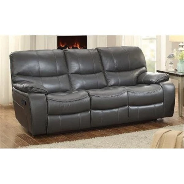 The Pecos Collection blends style and function to create a platform for relaxation. Modernizing the look of the ample seating is an inset contrast welt. The manual or power reclining mechanism to provide the user with a smooth transition from seated to reclined position. FeaturesBlack Bi-Cast Vinyl HeadboardMade in ChinaPecos Collection Dual Reclining Love seatSpecificationsColor: Grey Leather Gel MatchMin Height Top to Bottom(Inches): 39Max Height Top to Bottom(Inches): 39Min Width Side to Side(Inches): 88Max Width Side to Side(Inches): 88Min Depth Front to Back(Inches): 40Max Depth Front to Back(Inches): 40Collection Name: Pecos CollectionAssembly Required: YesDistressed Finish : YesWarranty Term: 30 DaysDimension(Inches): 88 x 40 x 39Weight: 193.6 lbs
