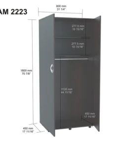 Wardrobe/Armoire by Inval® finished in a rich “Espresso” laminates in durable melamine which is stain, heat and scratch resistant. Constructed from manufactured wood The unit has a functional design and is an excellent choice for your home or home office. It features two doors with brushed chrome metal handles, a hanging bar that provides spacious area for hangers and two top shelves for additional storage. The unit sits on four plastic floor gliders for easy repositioning.