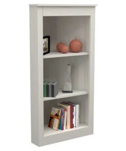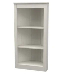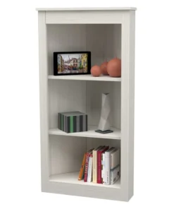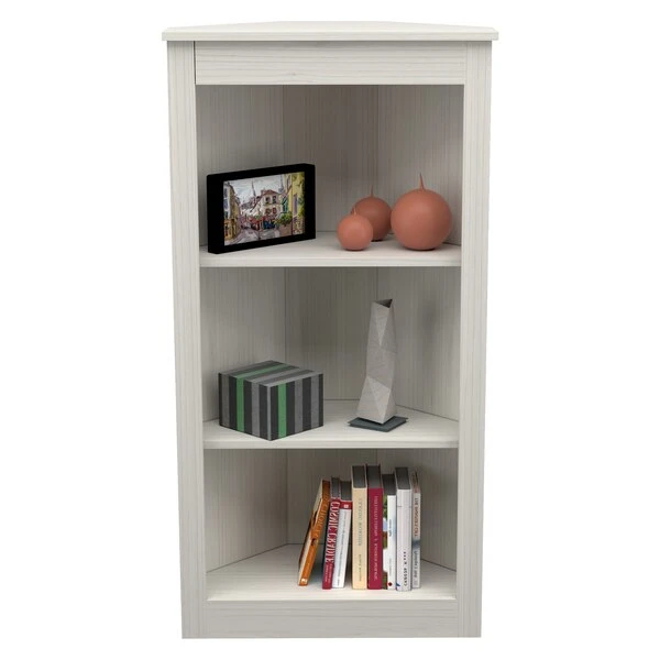Three Shelf Corner Bookshelf by Inval® finished in a rich "Washed Oak" laminate. This beautiful contemporary two-shelf corner bookshelf unit keeps your home organized and clutter-free while occupying little space. This bookshelf features three (3) open shelves to hold books, framed photos, decorative items and more. This is an ideal storage solution for any room and coordinates well with various ranges of decor styles. Constructed from manufactured wood laminated on both sides with durable melamine which is stain, heat and scratch resistant