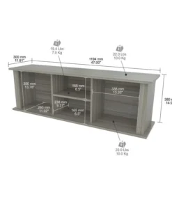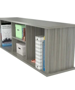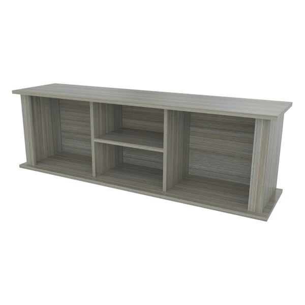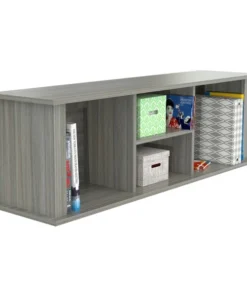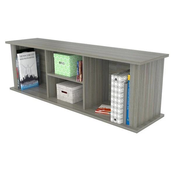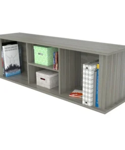 Wall-Mounted Hutch by Inval® finished in a rich “Smoke Oak” laminates in durable melamine which is stain, heat and scratch resistant. This wall mounted hutch has a functional modern design and is an excellent choice for home office or office. It features two horizontal shelves in the center and vertical storage area on each side providing ample storage space.