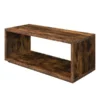 Dark Oak Veneer. Clear Glass Shelf.FeaturesType – Coffee TableFinish – Dark OakDimenion – 47.25 x 27.5 x 14.5 in.