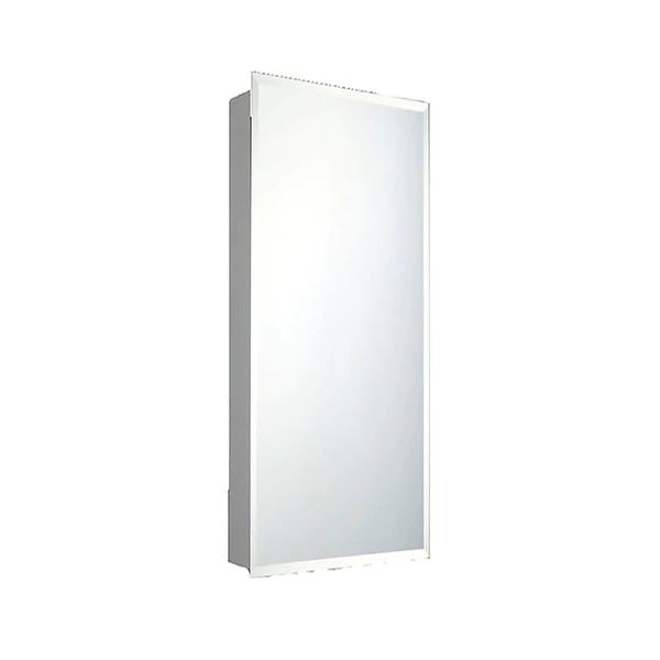 Our medicine cabinets are fabricated from a rust resistant white baked enamel finish on 20 gauge steel. Full length piano hinges, 3/16” mirror, and tempered glass shelves ensure lifelong durability, beauty, and traditional style. These cabinets also meet criteria for stringent HUD housing and federal specifications without looking institutional. Cabinets can be inverted in the field for right or left door swing.