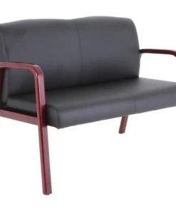 Love seat offers ideal guest seating with thick cushions, a wood frame and black bonded leather upholstery. Solid wood frame features front and back crossbars under seat for extra durability and strength. Four-leg, nonskid base is equipped with adjustable leg sliders for leg leveling. Chair also features fixed armrests to add to your comfort. Weight capacity is 275 lb.