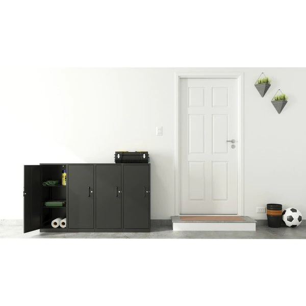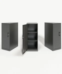 Three-shelf storage cabinet offers a closed storage solution that's perfect for a variety of uses. The lockable door keeps your belongings private and promotes a clean look that's free of visual clutter. The fully welded steel construction is durable and withstands temperature and humidity changes. Fully assembled design offers convenient simplicity for immediate use.