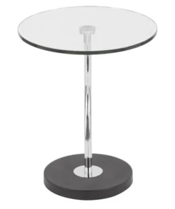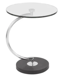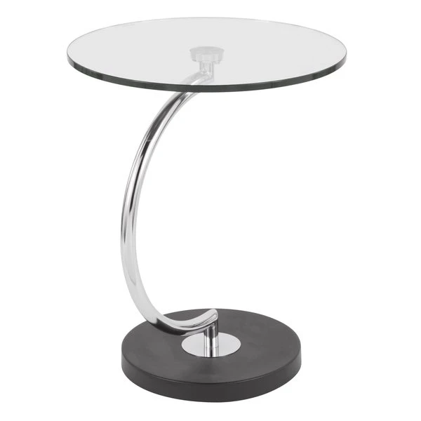 Sophisticated and unique, the “C" Table’s curvaceous design will be sure to turn heads. A sleek chrome stem supports a glass table top and sits on a polished black base. Great for use as an end table or accent table. Add a modern cosmopolitan style to your space by featuring this stylish design in your home.