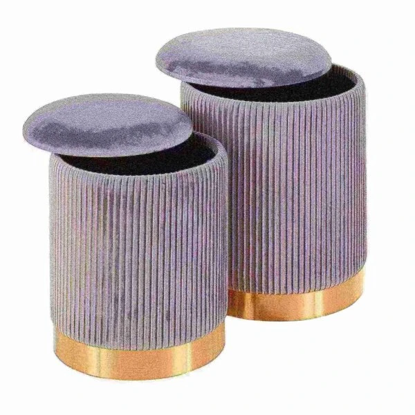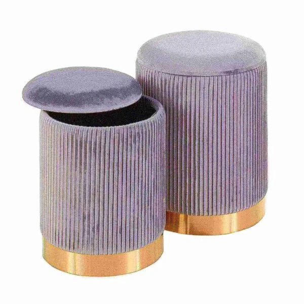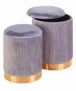 Bring a note of glamour to your home with the chic design of the Marla Pleated Nesting Ottoman Set by LumiSource. This set features a luxuriously soft pleated velvet and chic gold metal base. The smaller ottoman nests inside the larger ottoman for a space-saving design. Available in a variety of upholstery color options, choose the one that fits your space the best.