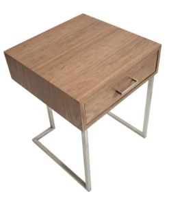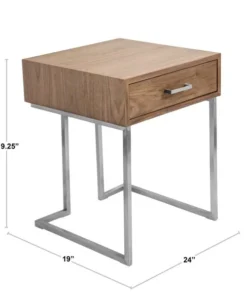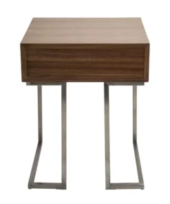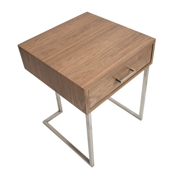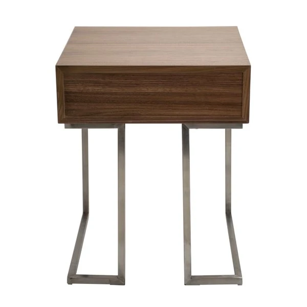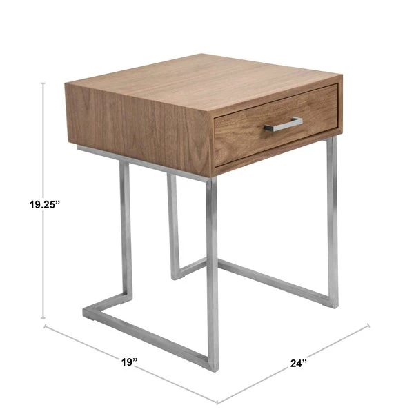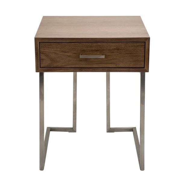 The clean, straight lines of the Roman end table make it the optimal piece to slip beside a sofa or next to a bed. The handy drawer hides remote controls, a journal and pen, or other small necessities. The brushed stainless steel frame adds a note of trendy, industrial design.