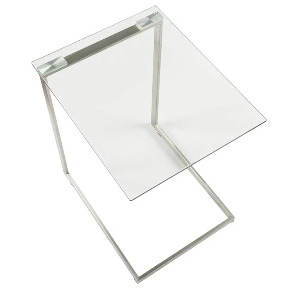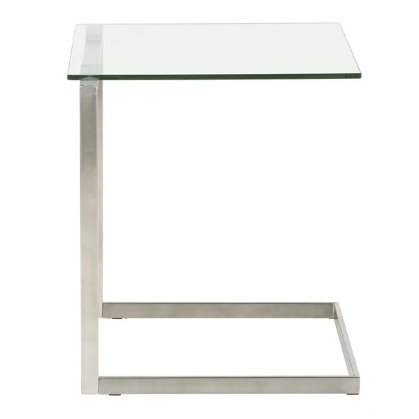This end table features a gracefully cantilevered tempered glass shelf on a brushed stainless steel frame. Blending beautifully into a variety of decors, you couldn’t ask for more from such a stylish end table.