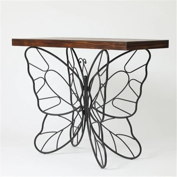 Want to; add the perfect touch to your entrance? This butterfly accent table is a; great option. This stylish table features a beautiful black metal butterfly; stand with a gorgeous dark-maple finish top making it a wonderful addition to; your eclectic decor. Your favorite lamp, family pictures, and decorative; vases will look fantastic displayed on the rich wood tabletop. The butterfly; accent table is a welcoming statement piece for any entryway, foyer, or; living area. Enjoy the elegance of the table that will make your house feel; like home.FeaturesButterfly Accent TableLiving Room FurnitureNatural wood finish with metal hardware and shelvesSpecificationsWeight: 20 lbs