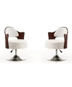 Add some fresh, contemporary personality to your space with this versatile accent chair. Featuring easily adjustable height and 360 degree swivel capability, the chic design is incredibly functional, providing style and superior mobility for any room in your home. Upholstered in snowy white Faux Leather, the distinctive round seat is encircled by a curved shell-style back boasting a rich wood grain. Mix and match with the coordinating Salon Chair for the full look.