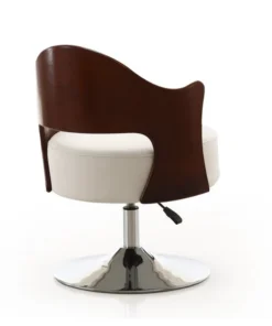 Add some fresh, contemporary personality to your space with this versatile accent chair. Featuring easily adjustable height and 360 degree swivel capability, the chic design is incredibly functional, providing style and superior mobility for any room in your home. Upholstered in snowy white Faux Leather, the distinctive round seat is encircled by a curved shell-style back boasting a rich wood grain. Mix and match with the coordinating Salon Chair for the full look.