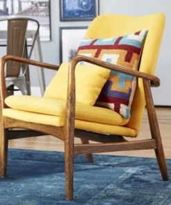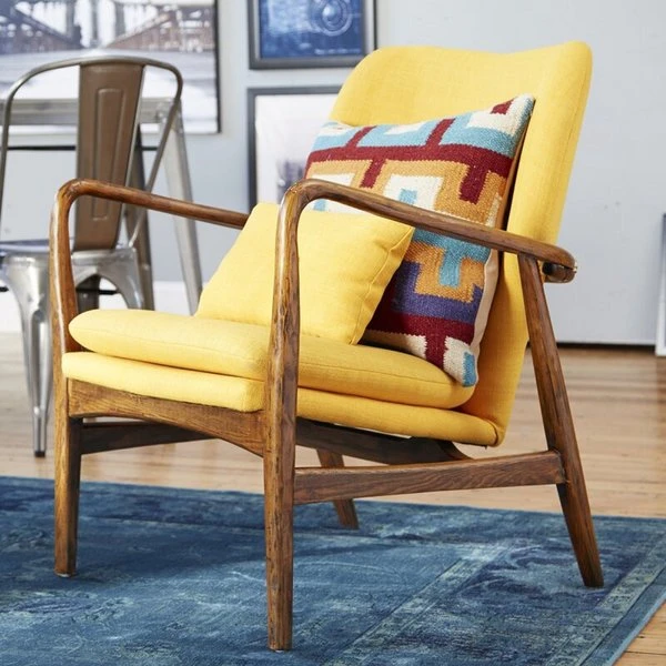 Make your house feel like a home. With its solid wood frame and earthy colors, this armchair expresses mid-century modern sensibilities that immediately evoke a sense of home. Though graceful, the frame has assertive lines and a robust quality, giving it an appealingly warm and welcoming look. The unapologetically tilted back and angled armrests are designed for reclining, while the extra seat cushion and removable back pillow ensure total comfort.