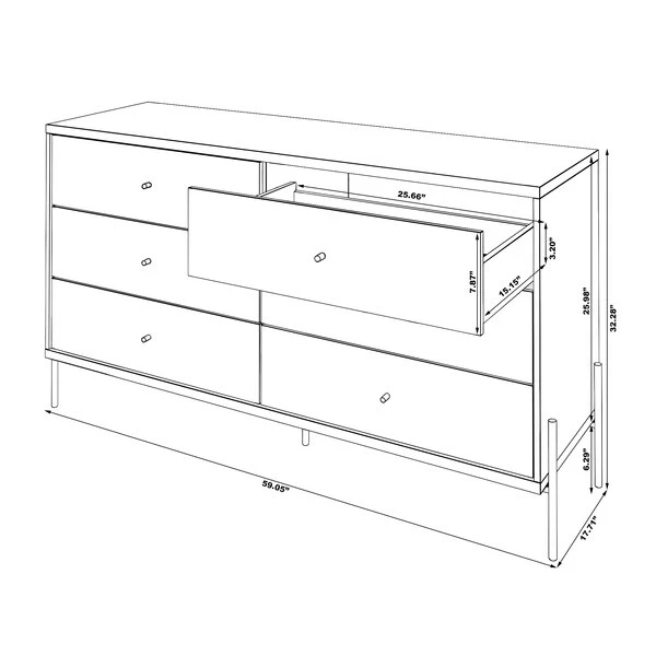 - Item: Double Dresser,6 Extnsn Drwr,White,59″