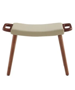 Easy living. Kick back and make yourself at home with this sleek cushioned ottoman. Crafted of solid ash with a rich walnut finish, its straightforward design has classic mid-century American appeal. The simplicity of form effortlessly complements a variety of chair styles, while its beautiful wood grain and textured upholstery make it a decorative accent all on its own. Its light weight and integrated handles make it easy to place it wherever you need it.