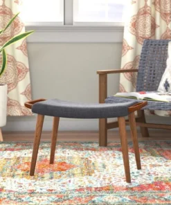 Easy living. Kick back and make yourself at home with this sleek cushioned ottoman. Crafted of solid ash with a rich walnut finish, its straightforward design has classic mid-century American appeal. The simplicity of form effortlessly complements a variety of chair styles, while its beautiful wood grain and textured upholstery make it a decorative accent all on its own. Its light weight and integrated handles make it easy to place it wherever you need it.