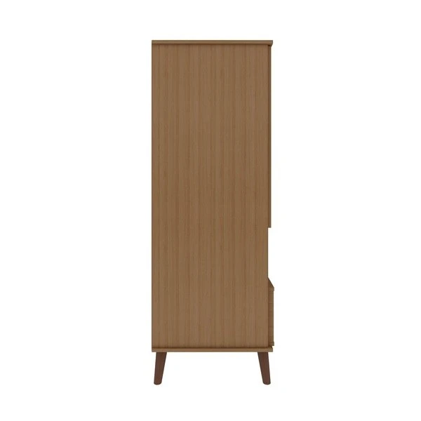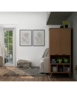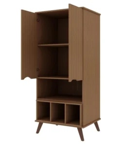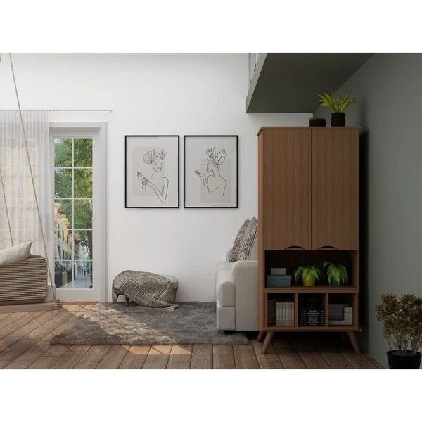 Style, function, and convenience meet in one beautifully crafted piece that works well in any space. A cabinet with ample storage space, this piece features an upper cabinet with artful doors concealing two larger shelves, while a center open shelf and three small lower shelves, are easily accessible and keep the space feeling open and airy. Display books, decorative boxes, design accents, and tuck away linens, tableware, albums, and other favorite items.