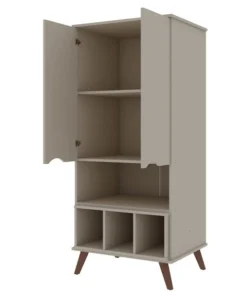 Style, function, and convenience meet in one beautifully crafted piece that works well in any space. A cabinet with ample storage space, this piece features an upper cabinet with artful doors concealing two larger shelves, while a center open shelf and three small lower shelves, are easily accessible and keep the space feeling open and airy. Display books, decorative boxes, design accents, and tuck away linens, tableware, albums, and other favorite items.