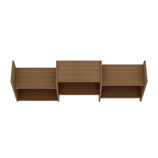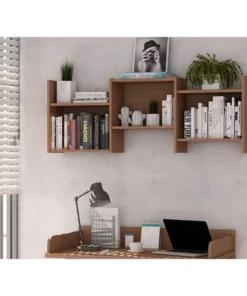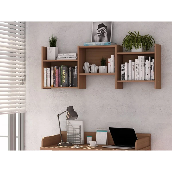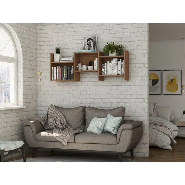 Enhance your decor and take your space up a style notch with this piece that acts as wall decor and functional storage space all in one. In shape and design, this is not your average shelving, but still leaves plenty of convenient open shelving for displaying books, decorative accents, favorite plants, and more, with upper surfaces to dress up with framed photos or some fresh florals. In a condo, master bedroom, or living room, this piece instantly draws the eye in and completes the area with a little bit of flair.