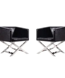 Take 5 in style. The iconic director's chair silhouette is reimagined in this confident contemporary accent chair. Classic folding legs are replaced with welded chrome-finished metal, while the casual low-back seat takes on tight tailoring and structured lines, transforming it into something decidedly sophisticated. Deep cushioning promises comfort with the inviting, slightly textured supple Faux Leather. Its generous seat and angled armrests give you plenty of room to lounge with a martini and great conversation.