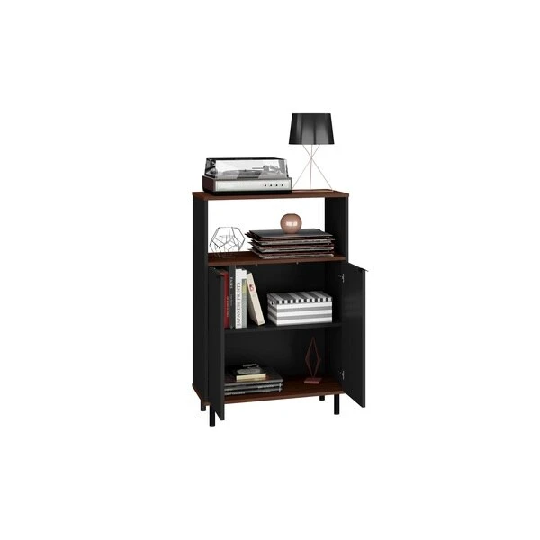 A living space must, the Mosholu accent cabinet is purposeful and functional with its easy desk and added storage. An open shelf is perfect for displaying books, artful accents, vintage record players, and beyond. A lower cabinet conceals two shelves that are great for stashing electronics, magazines, CDs, and more. A smooth top easily displays framed photos, a decorative lamp or mail tray.