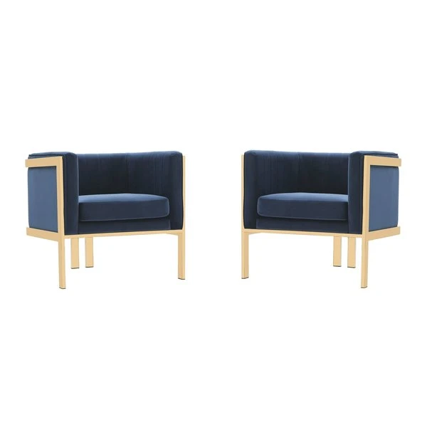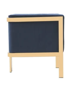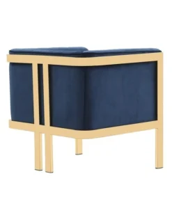Lounge in 1920s luxury. This sophisticated accent chair is a modern, assertive take on the classic Art Deco style. An open architectural frame in polished brass wraps around the plush velvet seat, creating an inviting combination of simplicity and luxury. The seat’s backrest is accented with vertical stitching to complement it's geometric frame. The symmetrical, streamlined look will add an evocative touch of distinguished ‘20s glamour to any space.