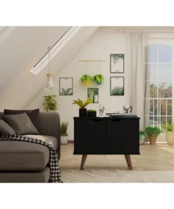 Manhattan Comfort Rectangle Hampton 33.07 Accent Cabinet in Black, 33.07 W, 15.75 L, 25.59 H, MDF and MDP Top, Black