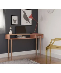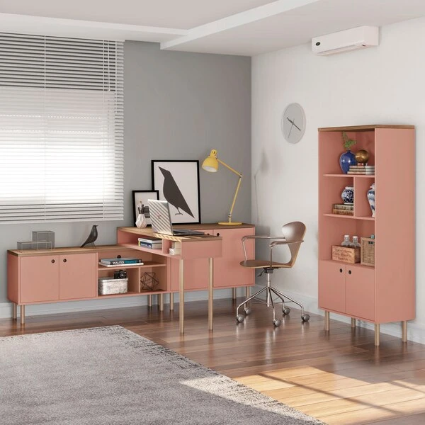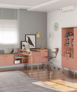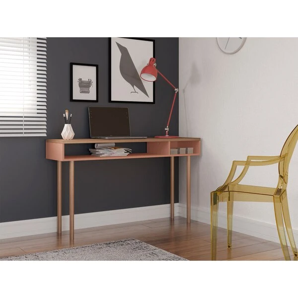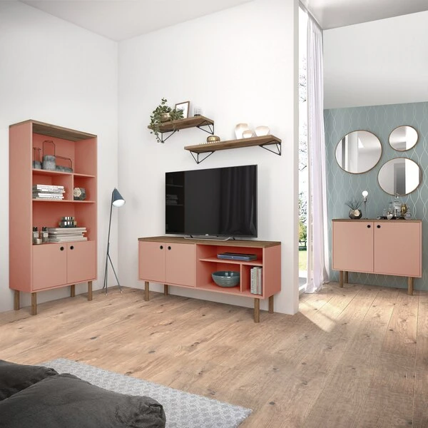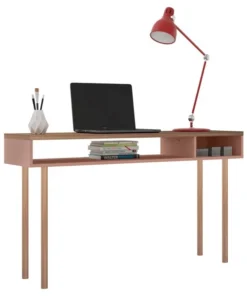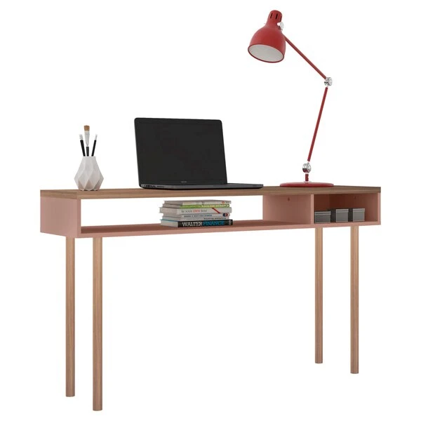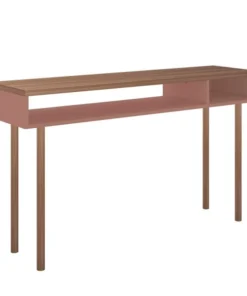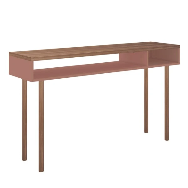 Manhattan Comfort Rectangle Windsor 47.24 Console Accent Table in Ceramic Pink and Nature, 47.24 W, 14.17 L, 30.71 H