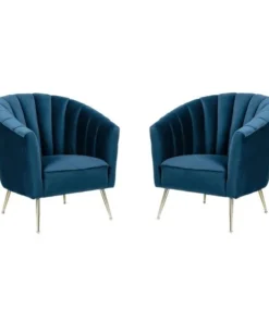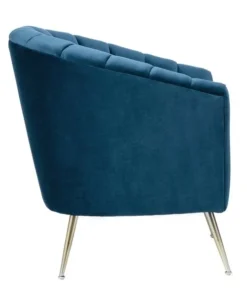 Utterly captivating. Elegance meets coziness in this exquisite accent chair. With a wraparound back, deep vertical channeling, and extra-plush padding, the shell-style seat surrounds you in comfort. Sumptuous velvet upholstery is soft to the touch with lustrous depth and show-stopping color. Set on angled stainless steel legs with gold tone finish, this chair gives style a whole new meaning.