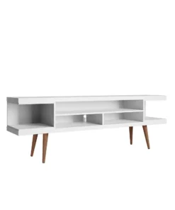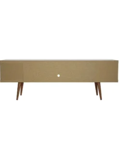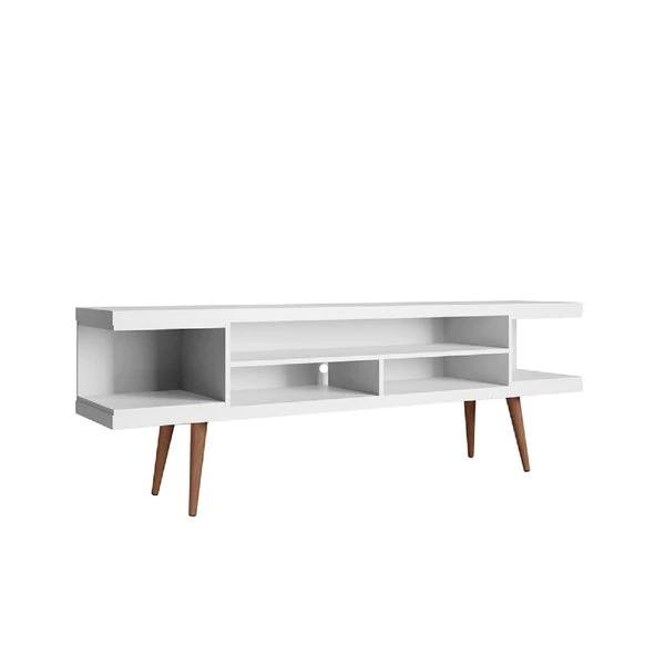 Mid Century – Modern Free Standing TV Stand for Living Room and Bedroom use. * Upon Assembly, Measures: 70.47 in. Length, 24.01 in. Height, 14.02 in. Depth. * Recommended for a 65" TV. * Ample Storage Space with Media Holes for Wire Management. * Includes 3 Center Shelves and 2 Large Open Side Compartments. * Fashionable Splayed Legs made from Solid Wood for Extra Durability. * Classy Sleek Design to Enhance your Living Environment * Home Assembly Required. All Hardware Included.