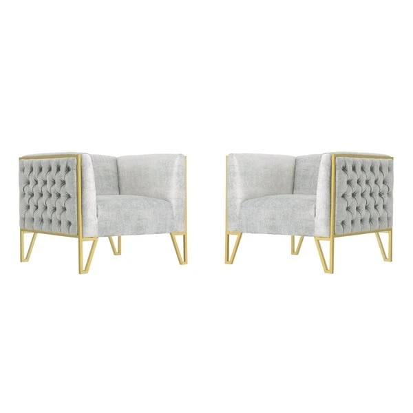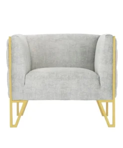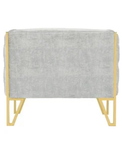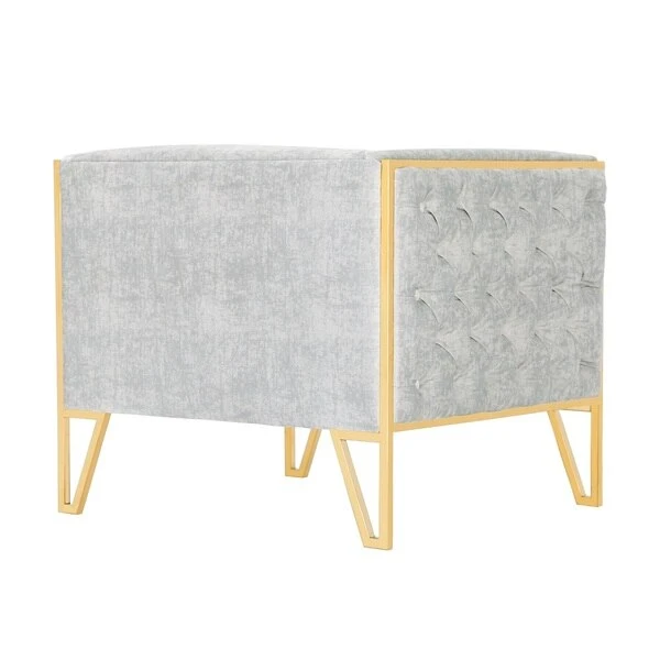 Dynamic. Contemporary. Upscale. Freshen up your living space with the Vector Accent Chair. Featuring a subtly geometric frame and open cutout feet, the design combines clean architectural lines with posh texture for an eye catching look. Rows of deep button tufts accentuate either side of the chair, emphasizing the plush cushioning beneath its tailored velvet upholstery. It’s luxe polished brass finish perfects the look. Coordinate with the matching Vector Sofa for a stylish update to your decor.