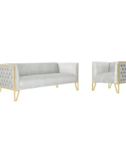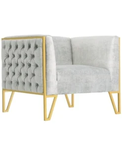 Dynamic. Contemporary. Upscale. Freshen up your living space with the Vector Accent Chair. Featuring a subtly geometric frame and open cutout feet, the design combines clean architectural lines with posh texture for an eye catching look. Rows of deep button tufts accentuate either side of the chair, emphasizing the plush cushioning beneath its tailored velvet upholstery. It’s luxe polished brass finish perfects the look. Coordinate with the matching Vector Sofa for a stylish update to your decor.