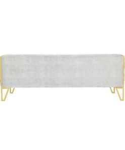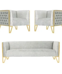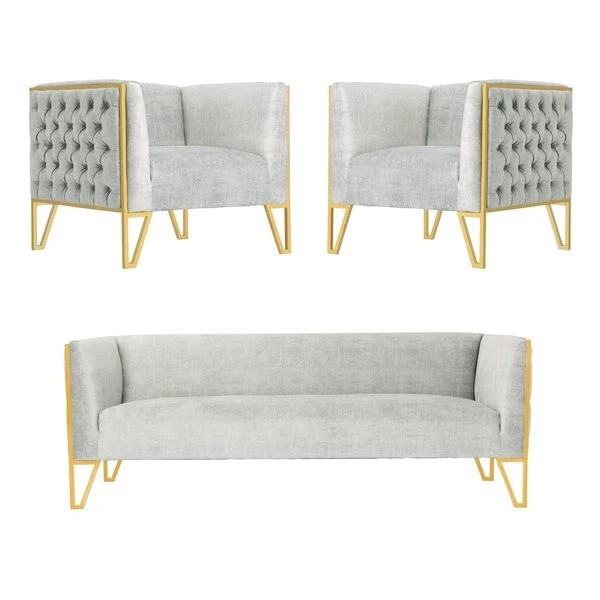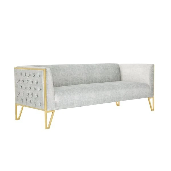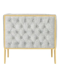 Dynamic. Contemporary. Upscale. Freshen up your living space with the Vector Accent Chair. Featuring a subtly geometric frame and open cutout feet, the design combines clean architectural lines with posh texture for an eye catching look. Rows of deep button tufts accentuate either side of the chair, emphasizing the plush cushioning beneath its tailored velvet upholstery. It’s luxe polished brass finish perfects the look. Coordinate with the matching Vector Sofa for a stylish update to your decor.