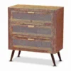 Modern Java finish jewelry box. Lift lid with mirror. Top two large divided sections and six equal sections. Dividers in drawers. Three necklace hooks in each side door. Brushed pewtertone hardware. Tassel key lock. Hand lined in ivory sueded fabric interior. 11 x 7 x 14.75 Made in China